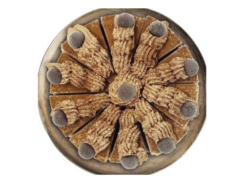 Bombón de chocolate Dubai, bañado en chocolate natural, veteado con salsa pistacho que esconde en su interior un cora...