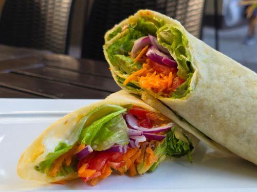 Wrap de lechuga, zanahoria, cebolla, palta, tomate y mayonesa.